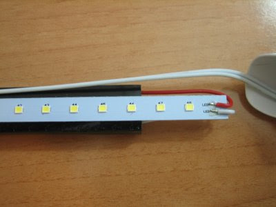 Y aquí podemos ver como monta una tira de 48 leds smd 2835 de la marca Epistar que está encajada en la ranura del perfil de aluminio (no está pegada y se puede deslizar por él)